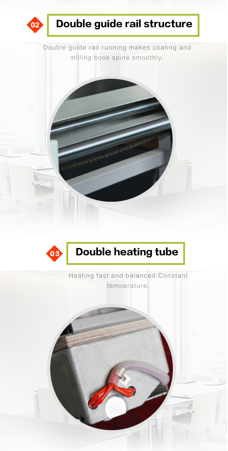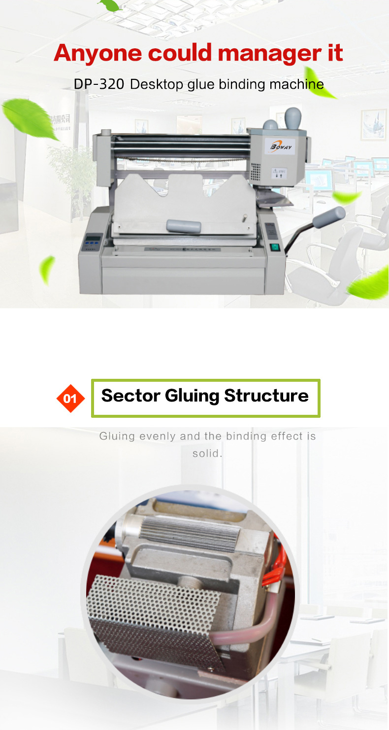 {"type":"2","json":[{"index":"0","tran_value":["DP-320"],"tran_label":"Model"},{"index":"1","tran_label":"Type","tran_value":["Desktop perfect binding machine"]},{"index":"2","tran_label":"Milling Cutter","tran_value":["Yes"]},{"index":"3","tran_label":"Hot pressing plank","tran_value":["No"]},{"index":"4","tran_label":"Multi-functional","tran_value":["No"]},{"index":"5","tran_label":"Electric driven brush glue","tran_value":["No"]},{"index":"6","tran_label":"Max binding size ","tran_value":["320x280mm"]},{"index":"7","tran_label":"Max binding thickness","tran_value":["two pages-40mm"]},{"index":"8","tran_label":"Max cover thickness","tran_value":["50-400g"]},{"index":"9","tran_label":"Heating time","tran_value":["15min(depends on ambient temperature)"]},{"index":"10","tran_label":"Power","tran_value":["500W"]},{"index":"11","tran_label":"N.W","tran_value":["36kg"]},{"index":"12","tran_label":"Dimension","tran_value":["650*350*500mm"]}]}