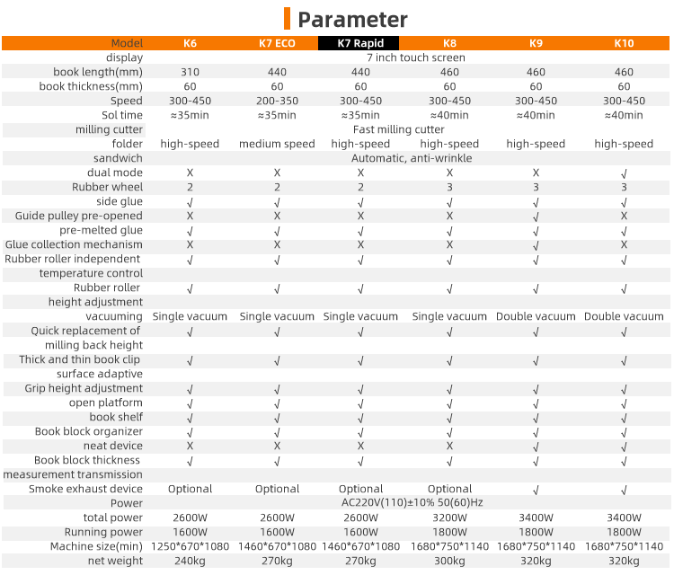 | Binding Speed (per hr) | 200-350 | 300-450 | 300-450 | 300-450 |